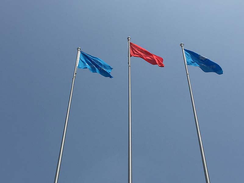 目前安装三根旗杆是公司,酒店,工厂,学校的主流选择,一般中间悬挂国旗并高出左右两边的旗帜0.5-1.2米,左右两边一般悬挂集团旗帜,校旗或班旗等,我司的三根电动升旗可以同升同降或分开升降并同步不同的音乐。
